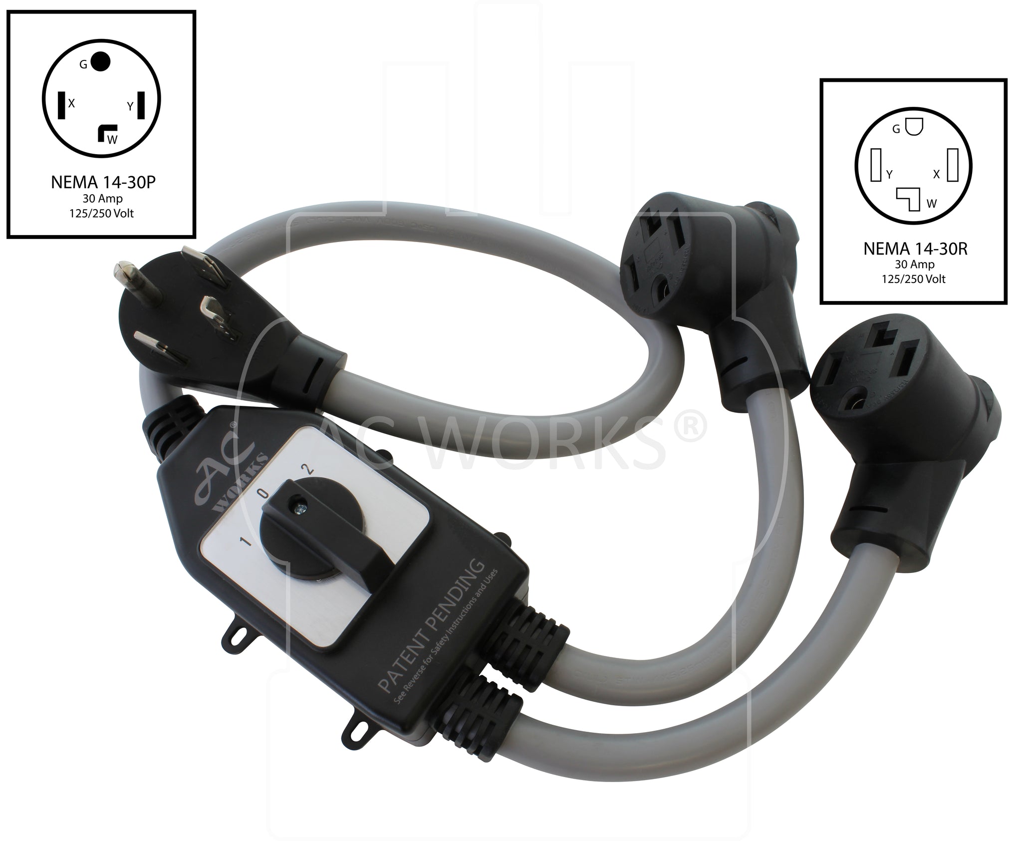 Ac Works Safety Switch Y Cable Evy1430sw 036 30a 125 250v Nema 14 3 Ac Connectors